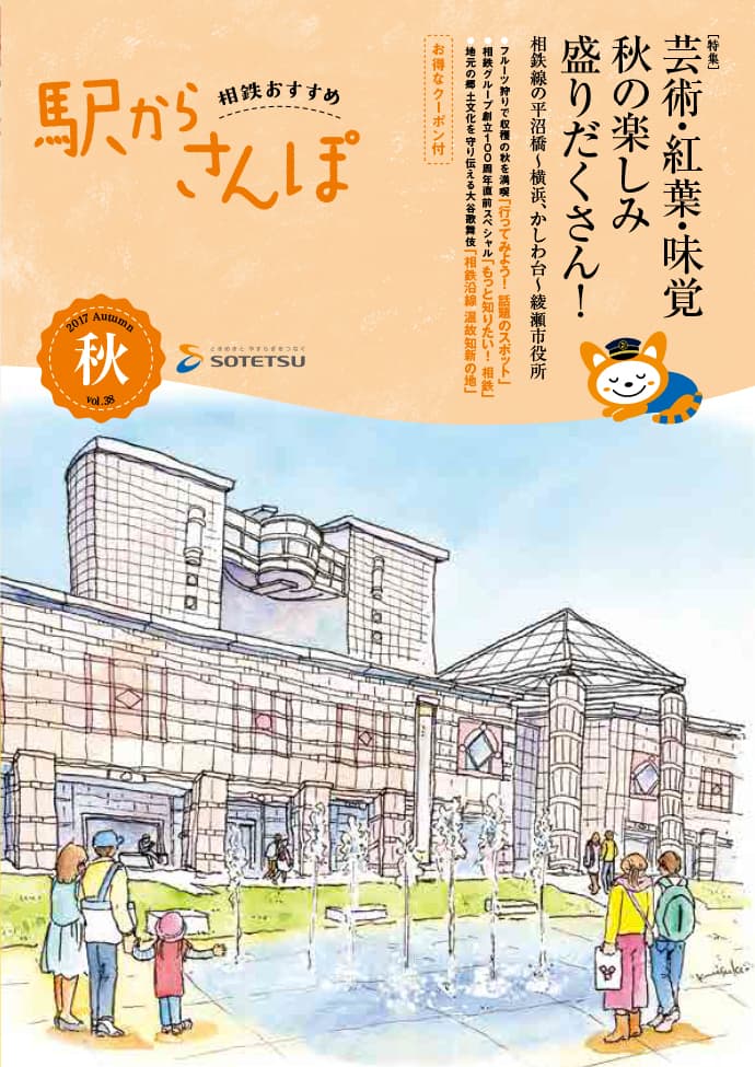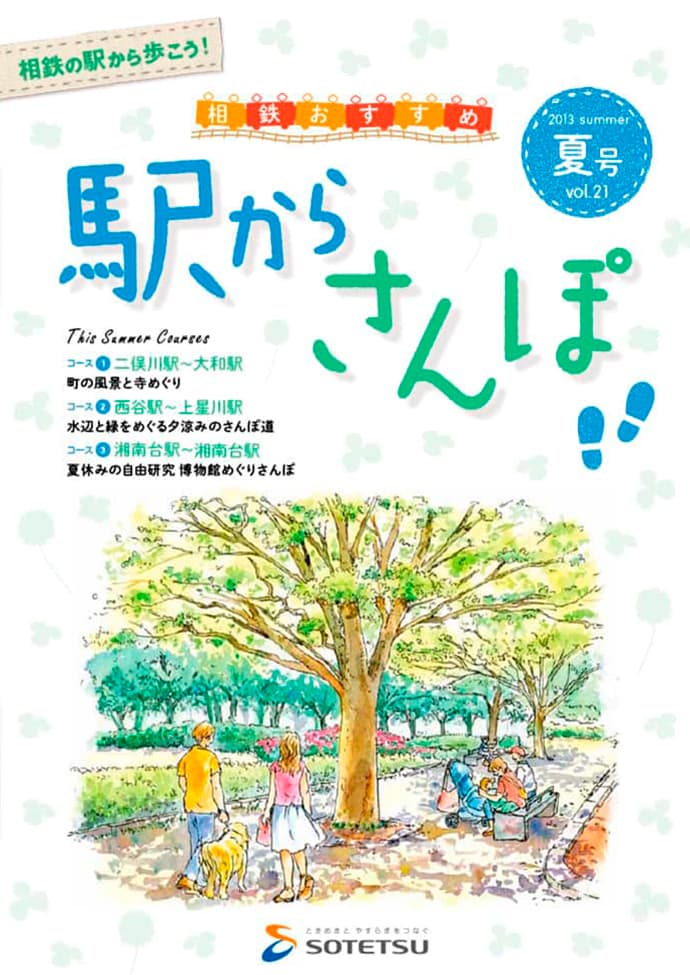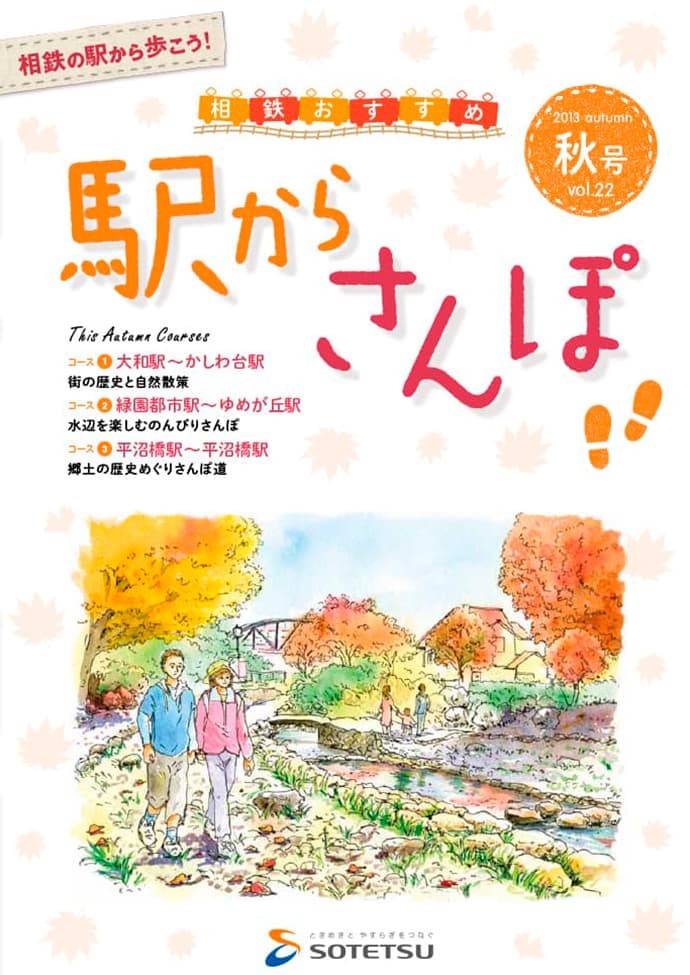 相鉄線沿線のウォーキングコースの特徴を分かりやすく記載したほか、神社・公園・遺跡・資料館など立寄りスポット、歩行距離や所要時間を紹介した情報誌です。