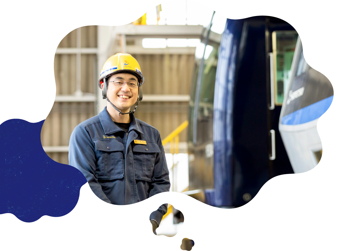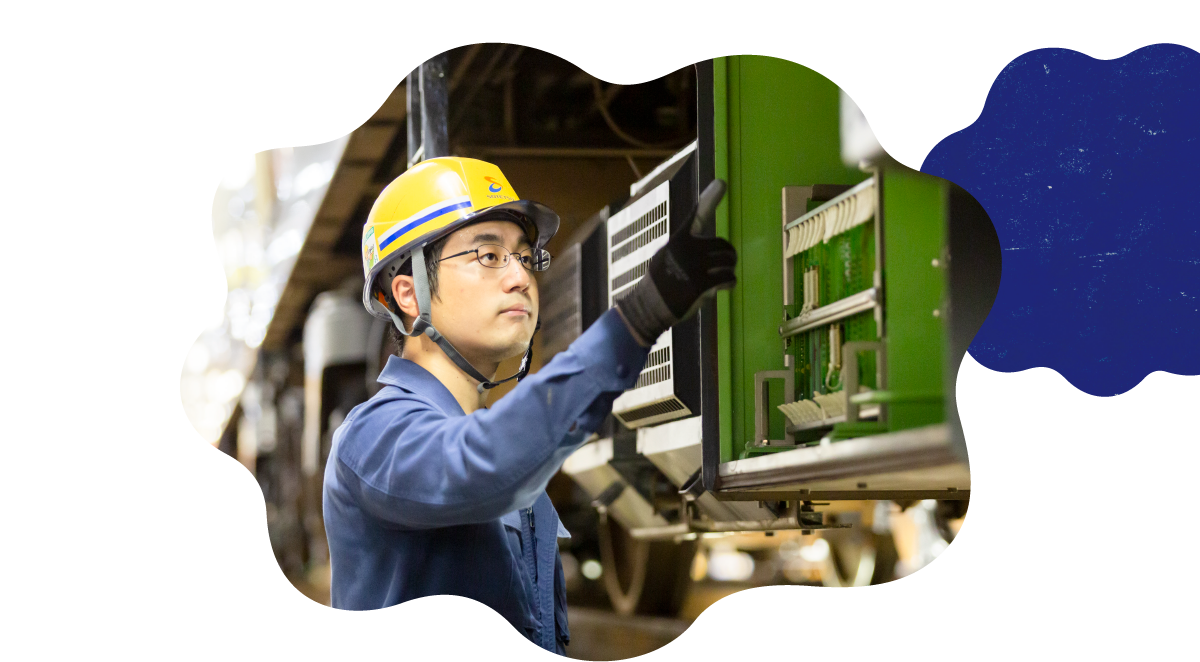 車両技術として、かしわ台車両センターで鉄道車両の検査業務を担当しています。最初は台車組立班に配属され、台車の整備を担当しました。子どもの頃から機械いじりが大好きだったので、走行の要である台車に触れられるだけでうれしく、同時に「絶対に不具合を起こさせてはいけない」という安全意識を強く持ちました。現在は電器班に所属し、制御装置の保守点検を担当しています。すべての点検はスケジュール化されています。たとえば架線から取り入れた1500Vの電気をモーターに流す断流器は、4年に一度、完全に分解してすべての部品を点検、洗浄、整備して、もう一度組み上げます。自分が検査した電車が走っている姿を見ると、とても感慨深いです。