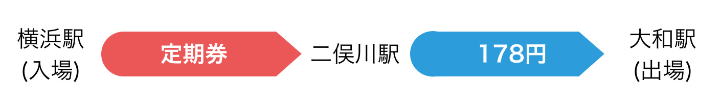 横浜駅~二俣川間のPASMO定期券で定期券区間外の大和駅までのりこした場合
